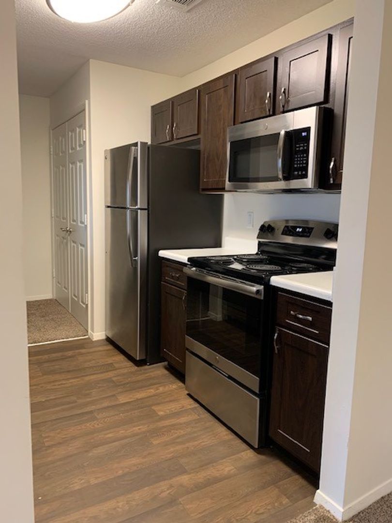 Perfect place to call home! This bright spacious 2br, 2b has beautiful espresso cabinets, stainless steel kitchen appliances, fauxwood & carpet flooring. Speed Queen washer and dryer, most of all the ideal space to balance life, work, and play. Kennedy floor plan, Elizabeth renovations. We take pride in our community. Come be a part of The Hamilton at Turman Farms where Excellence and Convenience meet!