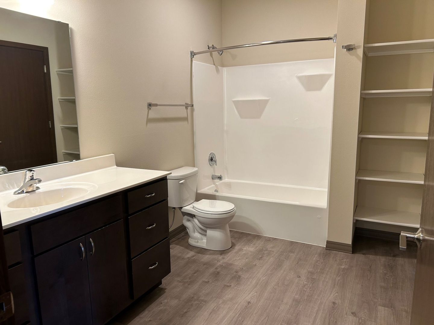 This beautiful and inviting 1br, 1b has a large kitchen island, carpet and LVP flooring, tons of cabinet space in the kitchen, and stainless-steel appliances. This apartment also features a separate room for laundry, a closet with a sliding barn door that connects the bedroom to the bathroom, a linen closet in the bathroom, and an amazing balcony. We take pride in making you feel at home with us. Join our community here at The Madison Apartments!