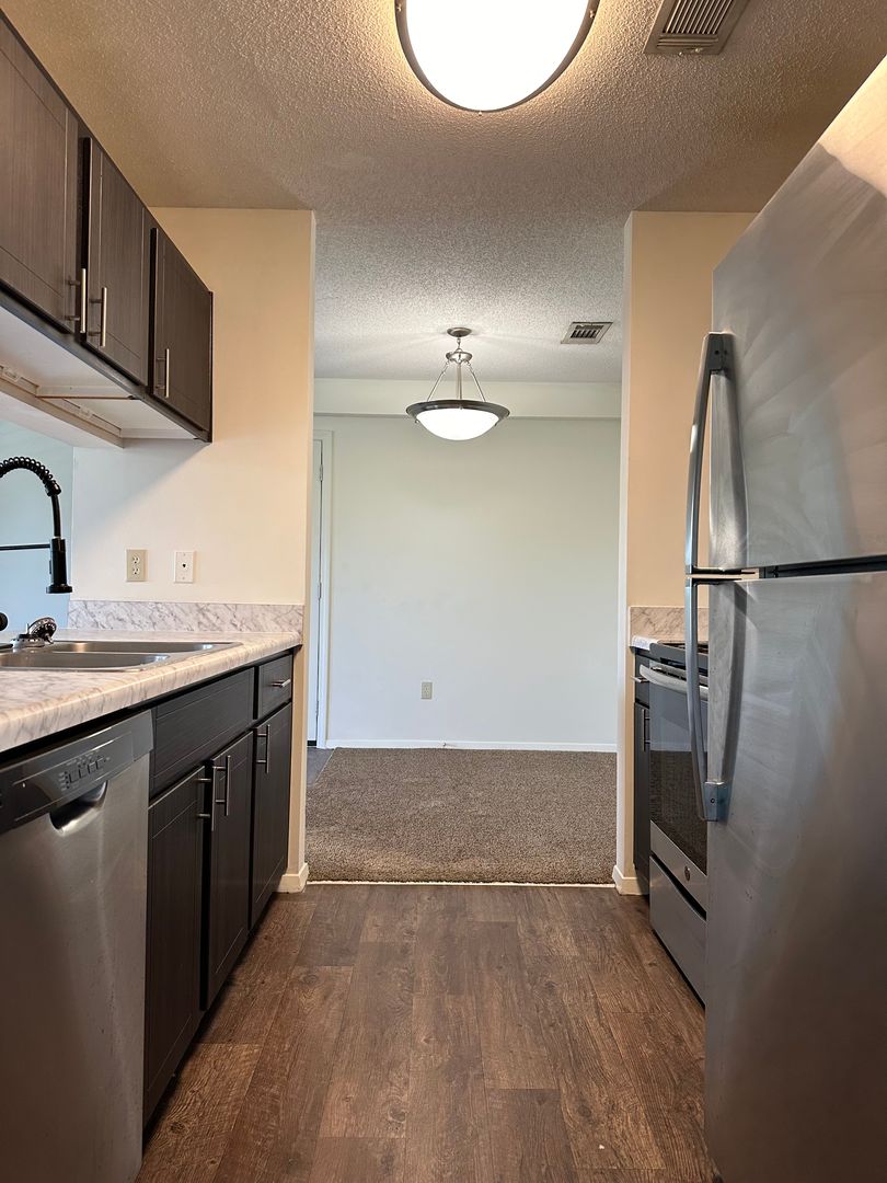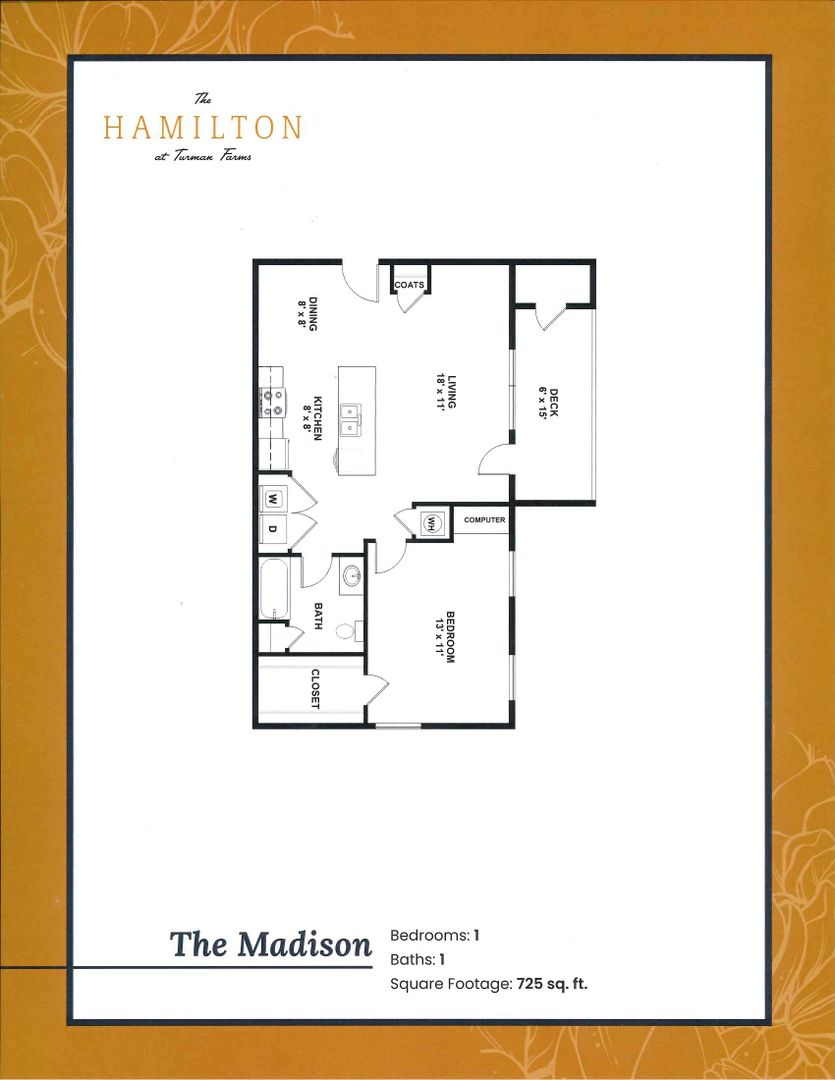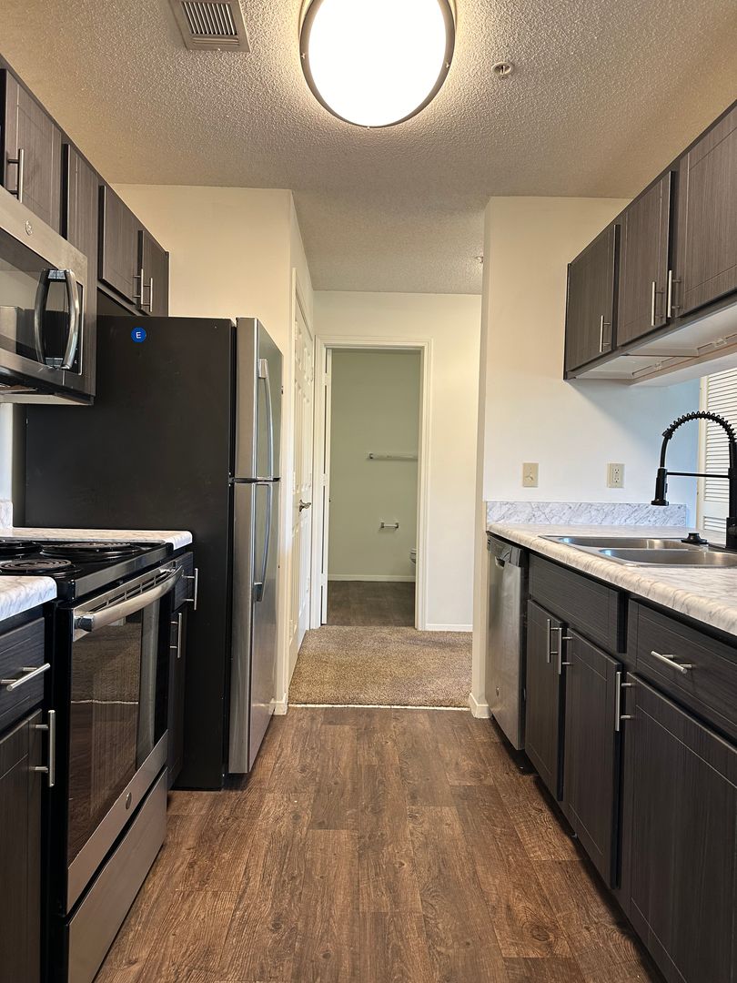 Our 1BR/1B Deck unit with storage closet. This stunning unit has beautiful grey cabinets, stainless steel kitchen appliances, fauxwood & carpet flooring. Washer and dryer, most of all the ideal space to balance life, work, and play. Come be a part of The Hamilton at Turman Farms where Excellence and Convenience Meet!